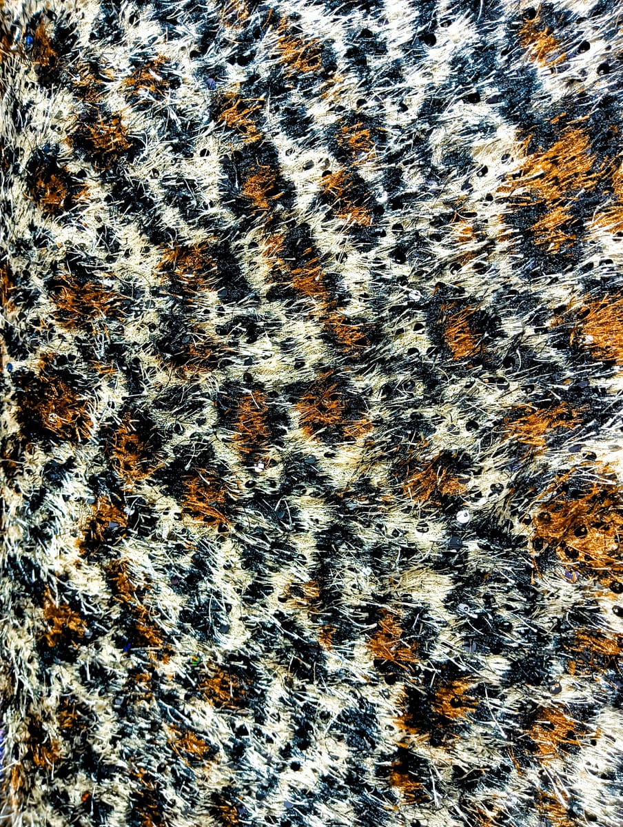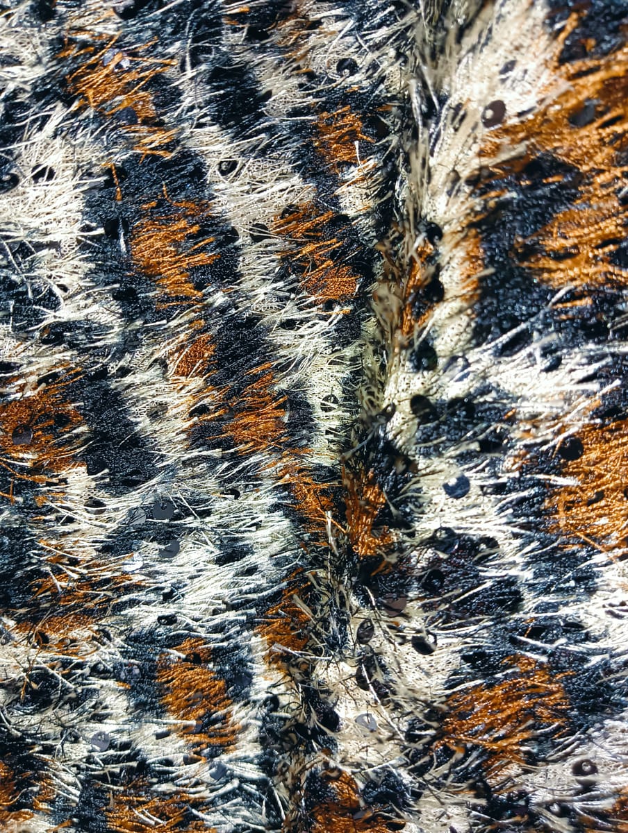Начало / Продукти / Платове / Дамаски / Еластичен плат леопард с пайет и косим