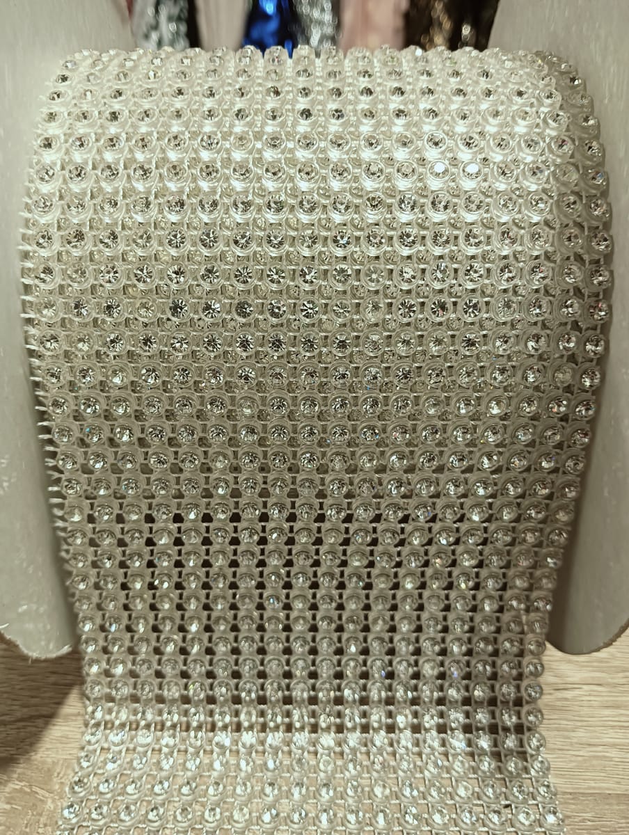 Лента с Кристали ✨ Блясък, който променя всичко! 💎 Прозрачни фасетирани камъчета върху мрежеста основа – идеални за декорация на облекла, чанти, сценични костюми, подаръци и празнични проекти. Добави луксозен, искрящ акцент към всеки детайл! ✨
