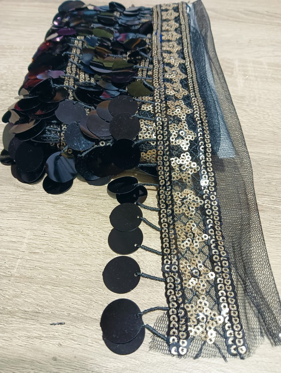Декоративен бордюр с пайети представлява широк текстилен кант .