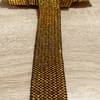 Двуцветна декоративна лента ✨ Златисти нишки с черни акценти в геометричен мотив за стилен и празничен ефект върху облекла, аксесоари и текстил.
