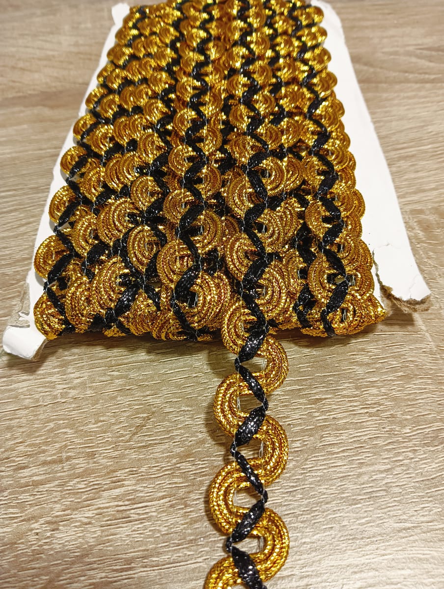 Вълнообразен мотив от лъскав златист лурекс и черна нишка . Перфектен за облекла, аксесоари или текстил .
